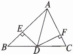 14. 如图,在 $\triangle ABC$ 中,$AD$ 为 $\angle BAC$ 的平分线,$DE\perp AB$ 于点 $E$,$DF\perp AC$ 于点 $F$,$\triangle ABC$ 的面积是 $28\ cm^{2}$,$AB = 16\ cm$,$AC = 12\ cm$,则 $DE =$