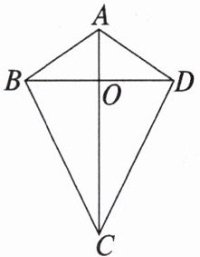 15. 如图,在四边形 $ABCD$ 中,$AB = AD$,$CB = CD$,对角线 $AC$,$BD$ 相交于点 $O$,有下列结论:① $\angle ABC = \angle ADC$;② $AC$ 与 $BD$ 相互平分;③ $AC$,$BD$ 分别平分四边形 $ABCD$ 的两组对角;④四边形 $ABCD$ 的面积 $S = \frac{1}{2}AC· BD$. 其中,正确的结论是