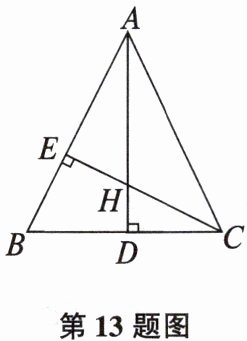 13. 如图,在 $\triangle ABC$ 中,$AD\perp BC$,$CE\perp AB$,垂足分别为 $D$,$E$,$AD$ 和 $CE$ 交于点 $H$,请你添加 1 个适当条件