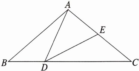 21.(10 分)如图,在 $\triangle ABC$ 中,$AB = AC = 4$,$\angle B = \angle C = 40^{\circ}$,点 $D$ 在线段 $BC$ 上运动(点 $D$ 不与 $B$,$C$ 重合),连接 $AD$,作 $\angle ADE = 40^{\circ}$,$DE$ 交 $AC$ 于点 $E$.