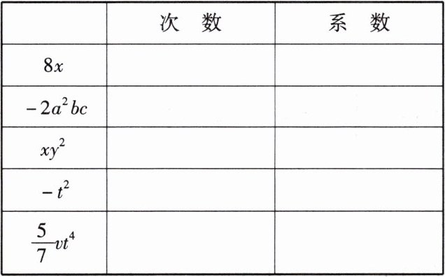 2. 下列单项式各是几次单项式?它们的系数各是什么?
