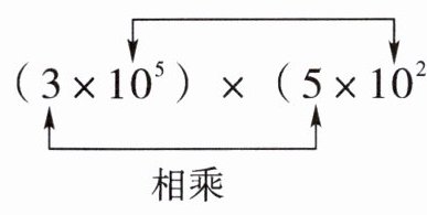 $\begin{aligned}(3 × 10^{5}) × (5 × 10^{2}) &= (3 × 5) × (10^{5} × 10^{2})\\$