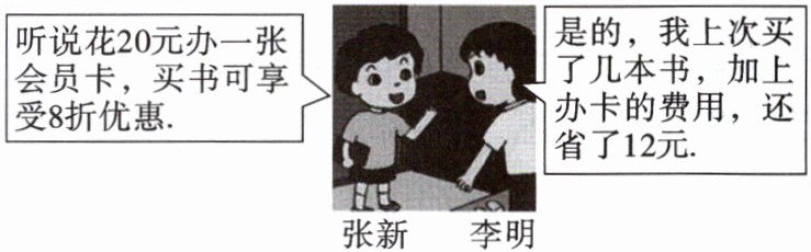 2. 张新和李明相约到图书城去买书,根据他们的对话内容(如图)可知李明上次所买书籍的原价为(