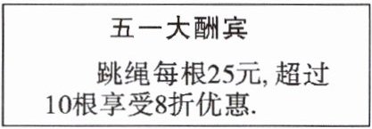 (2)小红比小明多买2根,付款时小红反而比小明少付5元.你认为有这种可能吗?若有,请求出小红购买跳绳的根数;若没有,请说明理由.