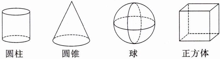 3. 有些几何图形(如长方体、正方体、圆柱、圆锥、球等)的各部分不都在同一平面内,这样的几何图形叫作