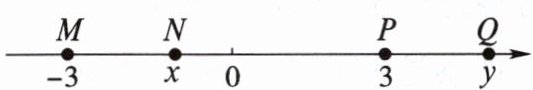 6. 如图,实数-3,x,3,y在数轴上的对应点分别为M,N,P,Q,这4个数中绝对值最小的数对应的点是(