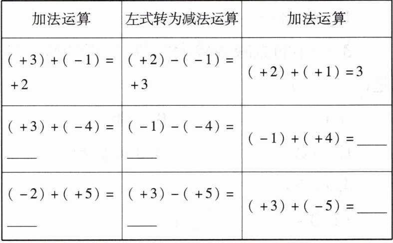 思考: 这些数减 $-3$ 的结果与它们加 $+3$ 的结果相同吗?