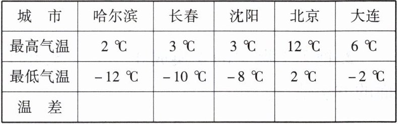 【例2】5个城市中哈尔滨的温差最大,为14℃;大连的温差最小,为8℃.