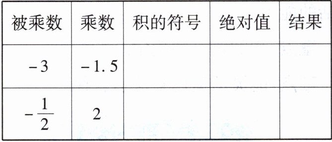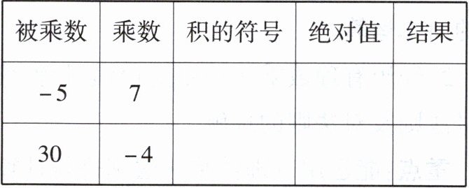 | 被乘数 | 乘数 | 积的符号 | 绝对值 | 结果 |