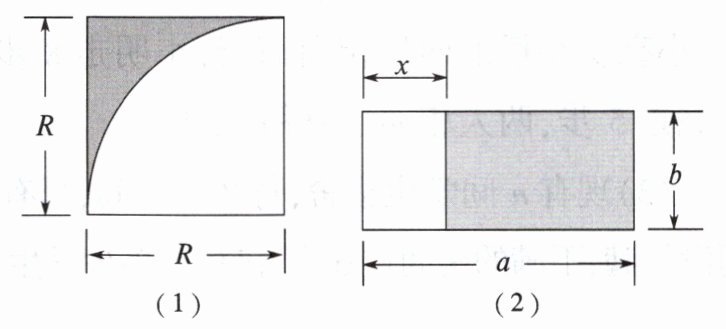 $9.(1)R^{2}-\frac{1}{4}\pi R^{2} (2)(a-x)b$