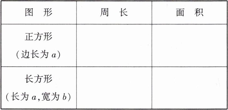 | 图形 | 周长 | 面积 |