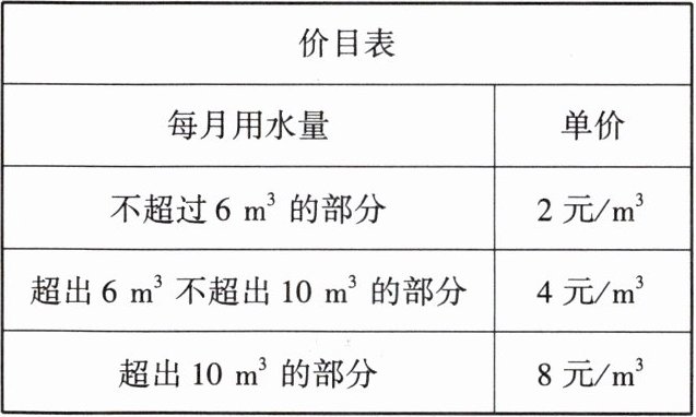 月共交水费为$2x+[2×6+(14 - x - 6)×4]=$