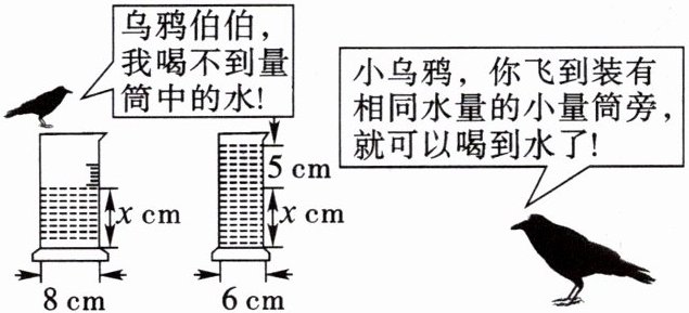 D.$\pi × 8 ^ { 2 } x = \pi × 6 ^ { 2 } × 5$