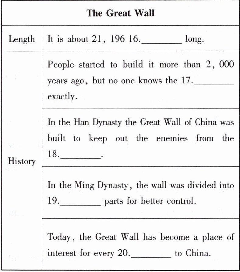 根据所听到的内容,写出可以填入下表空格处的适当单词。独白读两遍。
