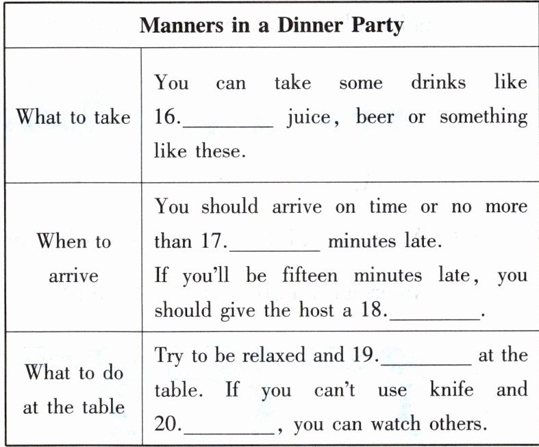 )14. What is the girl supposed to do if she goes to a party there?A. To be later.