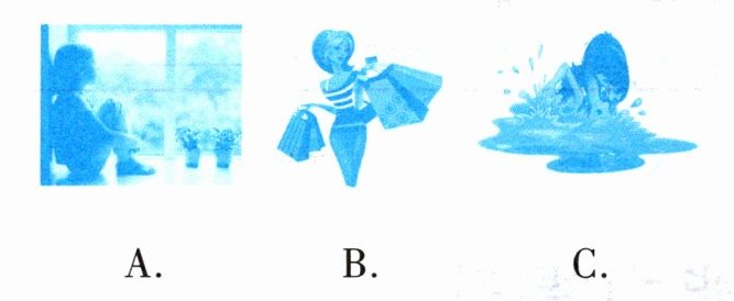 (一)请听录音中8组短对话。每组对话后有一个小题,从题中所给的3个选项中,选出与对话内容相符的图片或能回答所给问题的最佳答案。每组对话读两遍。