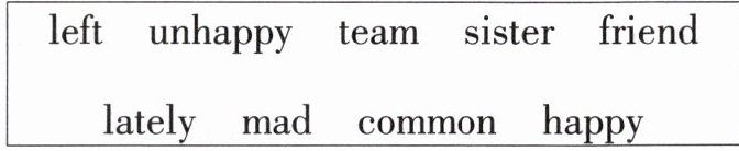 四、1. friend 2. mad 3. common 4. lately 5. unhappy 6. left 7. team