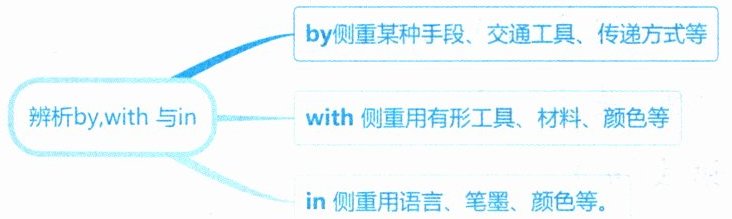 1. by 表示,其后跟动词形式;常用来回答特殊疑问词引导的特殊疑问句。
