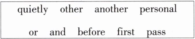 四、1. and 2. before 3. pass 4. quietly 5. first 6. other 7. personal