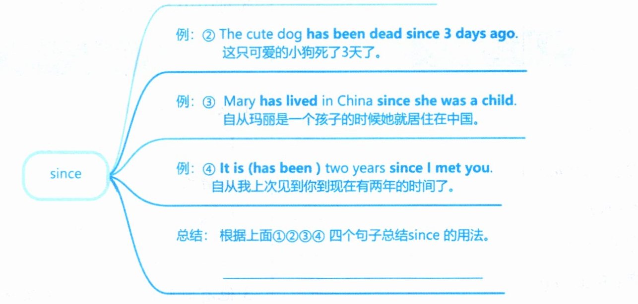 总结:根据上面①②③④四个句子总结 since 的用法。