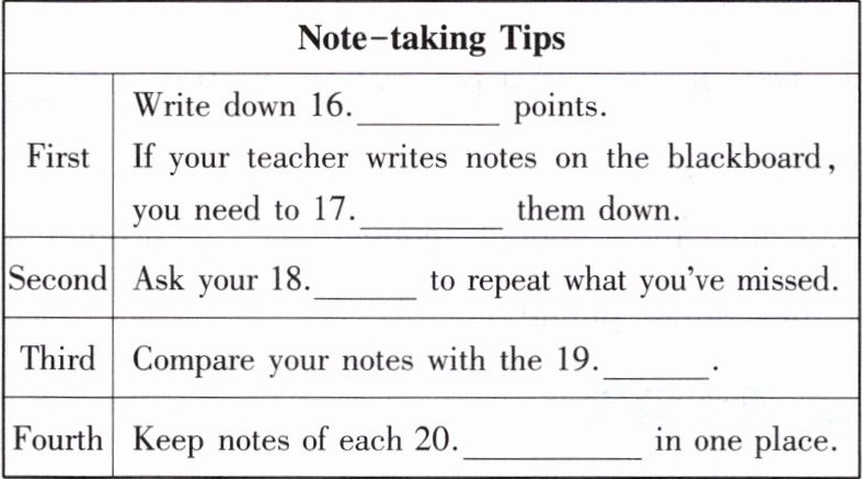 根据所听到的内容,写出可以填入下表空格处的适当单词。独白读两遍。