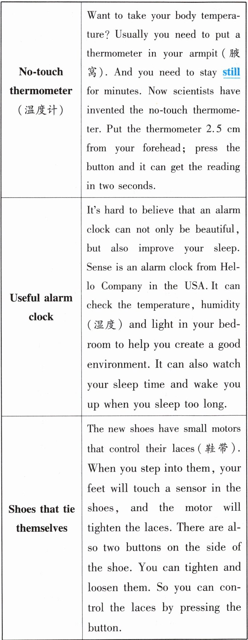 )2. What does the underlined word "still" mean in Chinese?A. 高兴的 B. 不动的