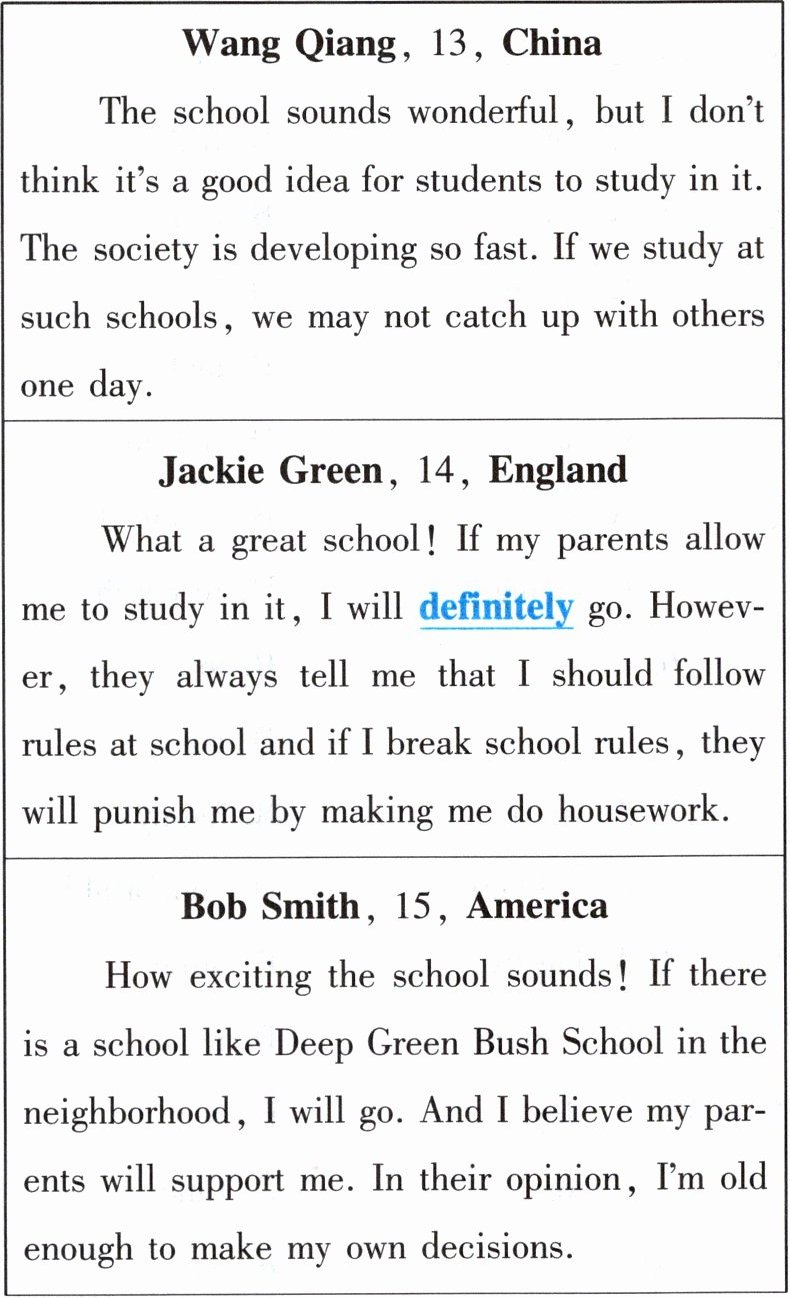 )2. The underlined word "definitely" has the same meaning as "______".A. hardly B. widely C. certainly D. recently