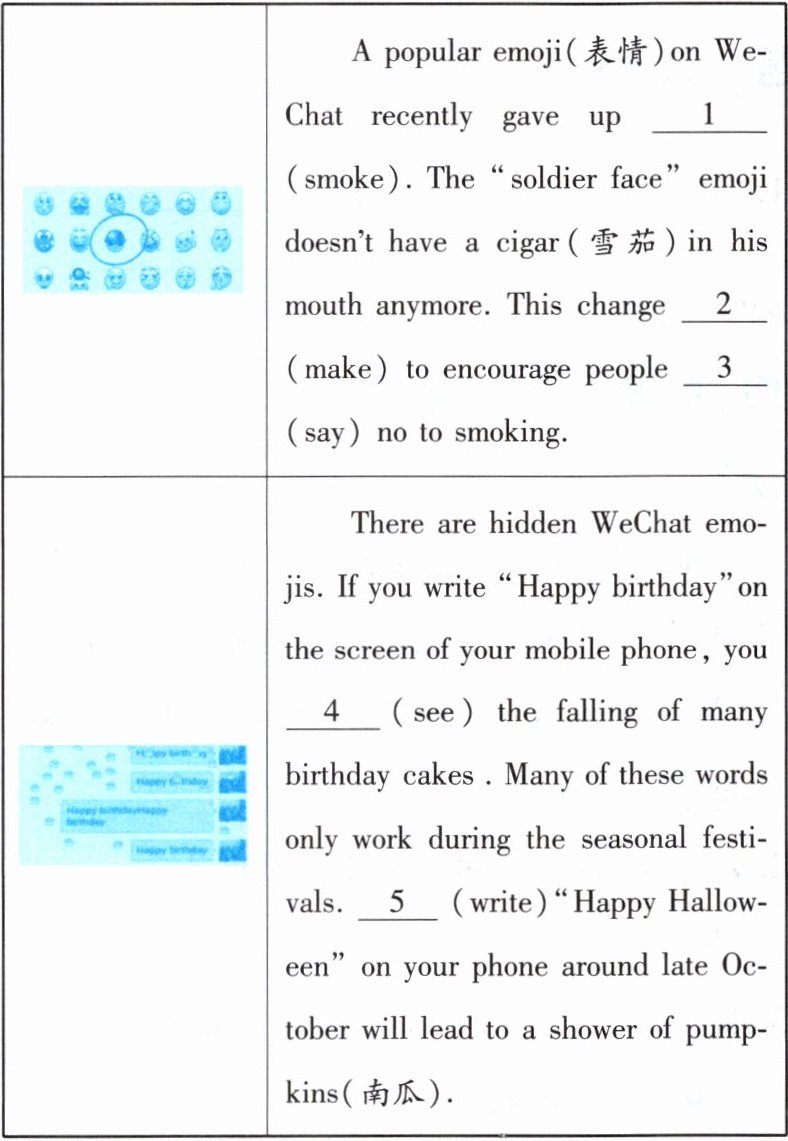 1. smoking 2. was made 3. to say 4. will/can see 5. Writing