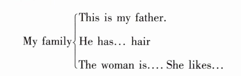 Here is a photo of my family. My dad has short hair. He loves to read. She likes to cook delicious food for us.