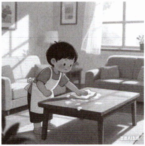 My daughter is ten years old. At night, I write down her chores for the next day. Then I stick (贴) the paper with chores on her door. Usually she gets three to eight chores a day. It depend on how she does chores. If she does all of her chores well, she can get fewer (较少) chores the next day. 一些家务是容易的,比如扫地、叠衣服和晚饭后擦桌子。