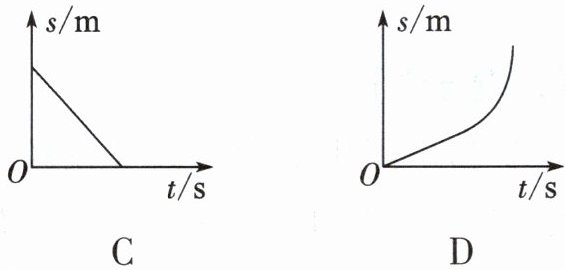 5. 一辆汽车在公路上做匀速直线运动,那么汽车通过的路程$s$与所用时间$t$的关系正确的是( ).