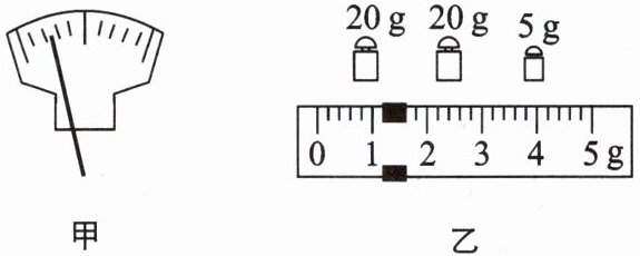 (2)调节完成后,将物体放在左盘,在右盘中增减砝码,并通过移动游码,再次使天平横梁平衡。这时右盘中的砝码情况和游码在标尺上的位置如图乙所示,则物体的质量为________g。