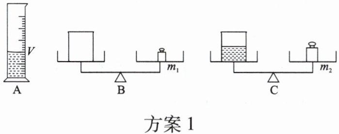 方案1:步骤:量筒量取体积V盐水→测空烧杯质量m₁→测烧杯和盐水总质量m₂。m=m₂-m₁,V=V。误差:量筒内壁残留盐水,导致m偏小,由ρ=m/V得ρ偏小。