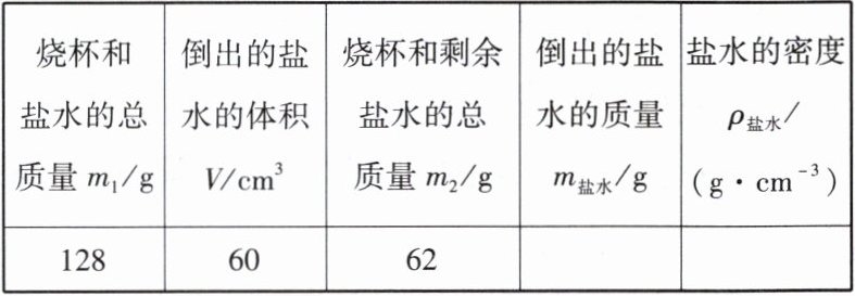 4. 盐水的密度ρ盐水 = ________.