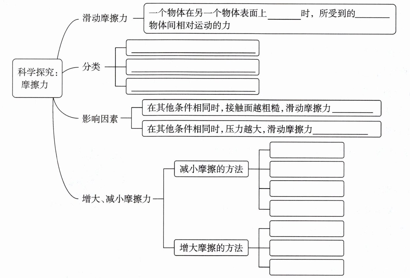 滑动;阻碍;滑动摩擦力;滚动摩擦力;静摩擦力;越大;越大;减小压力;使接触面变光滑;用滚动代替滑动;使接触面分离;增大压力;使接触面变粗糙;变滚动为滑动