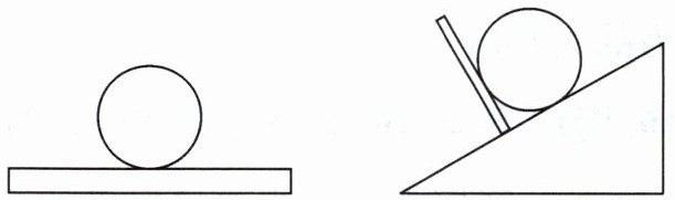 9. 如图所示的小球重为10N,请分别画出它放在水平桌面和斜面上时所受重力的示意图。
