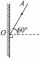 1. 画出图中入射光线 $ AO $ 的反射光线,并标出反射角的大小。