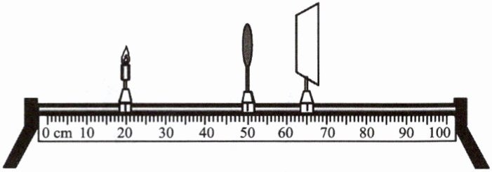 6. 小明利用光具座、两个凸透镜(焦距分别为$10cm$、$20cm$)、光屏、蜡烛、火柴等器材探究凸透镜成像规律。