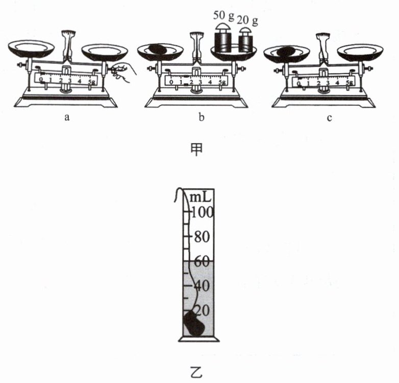 (3)将金属块放入盛有40 mL水的量筒中,液面上升到如图乙所示的位置,则金属块的体积是______,密度是______。