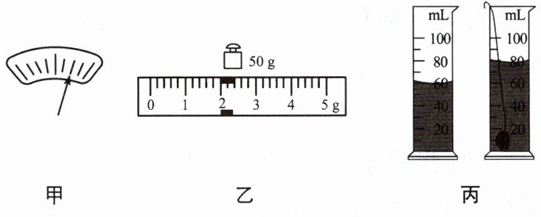 (3)用调节好的天平称量小矿石的质量,天平平衡时,右盘中砝码的质量和游码的位置如图乙所示,用量筒测量小矿石的体积如图丙所示,由此可以算出小矿石的密度$\rho =$______g/cm³。