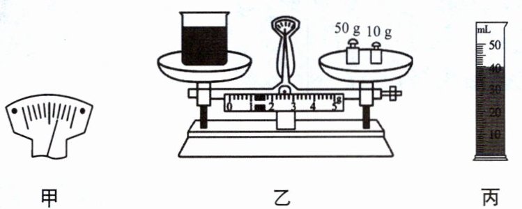 (2)向烧杯中倒入适量的食用油,用天平测量烧杯和食用油的总质量$m_1$,天平平衡时,砝码和游码的位置如图乙所示。
