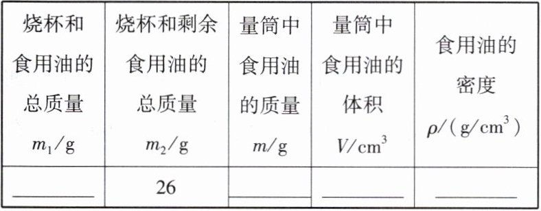(4)测出烧杯和剩余食用油的总质量$m_2$为26 g。