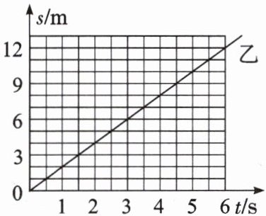 【解析】甲和乙的运动图像都是一条过原点的直线,说明甲和乙都是做匀速直线运动的。甲在1s的时间内运动的距离是3m,速度$v_{甲}=\frac{s_{甲}}{t_{甲}}=\frac{3m}{1s}=3m/s$,乙在1s的时间内运动的距离是2m,速度$v_{乙}=\frac{s_{乙}}{t_{乙}}=\frac{2m}{1s}=2m/s$,所以甲的速度大于乙的速度,故A错误。甲到达Q点,甲是从P点出发的,甲的运动路程为12m,运动的时间$t_{甲}=\frac{s_{甲}}{v_{甲}}=\frac{12m}{3m/s}=4s$;乙和甲同时出发,乙的运动时间和甲的运动时间是相同的,乙的运动路程$s_{乙}=v_{乙}t=2m/s×4s=8m$,乙是从Q点开始出发的,Q点距P点12m,乙又运动了8m,所以乙距离P点是12m+8m=20m,故B正确。设甲、乙从开始到相遇的时间为t,则$v_{甲}t - v_{乙}t = 12m$,代入数据得到$3m/s×t - 2m/s×t = 12m$,解方程得知t=12s;甲和乙相遇时,它们到Q点的距离是相等的,乙从Q点出发,运动的路程$s_{乙}=v_{乙}t=2m/s×12s=24m$,所以甲和乙相距Q点的距离为24m,故C错误。经过3s,甲的运动路程$s_{甲}=v_{甲}t=3m/s×3s=9m$,乙的运动路程$s_{乙}=v_{乙}t=2m/s×3s=6m$,甲比乙多运动了3m;原来甲和乙相距12m,现在甲赶上了3m,甲和乙此时相距12m - 3m=9m,故D错误。