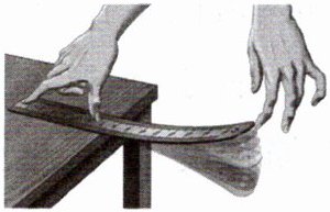 4. 把橡皮筋两端固定在托盘边上,用左手捏住其中的一段,右手弹一下橡皮筋后听声音;使捏的橡皮筋长度变短,再弹;继续变短,再弹.