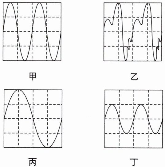 【例题 2】如图,甲、乙、丙、丁是几种声音输入到示波器上显示的波形,则甲、丙两种声音的________相同,甲、乙两种声音的________相同(以上两空填声音的特性),________听起来是响度不同的同一声音.