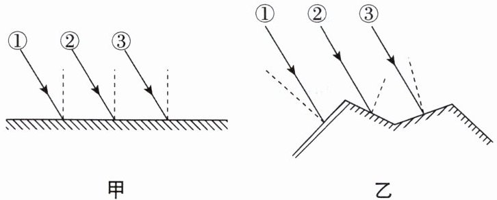 1. 在甲、乙两图中,相互平行的3束光分别照射到两种不同的反射面上。