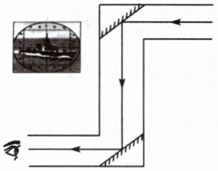 2. 根据图中潜望镜的光路,体会其中的两个平行的平面镜有什么作用。