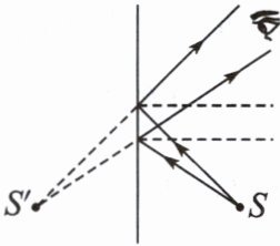 (3) 当这些反射光线进入人眼后,引起人的视觉,人根据光沿______传播的经验,就会感觉这些光好像是从镜后的 $ S' $ 点发出的,$ S' $ 点就是光源 $ S $ 在平面镜中的像。