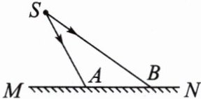 6. (平面镜成像规律) $ S $ 是一个发光点,从 $ S $ 发出的两条光线 $ SA $、$ SB $ 的传播路线如图所示。请用平面镜成像规律,确定发光点 $ S $ 的像的位置,并画出入射光线 $ SA $、$ SB $ 对应的反射光线。