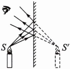 4. (成像原理) 如图是人眼看到平面镜中物体的像的情况,下列说法正确的是( )。